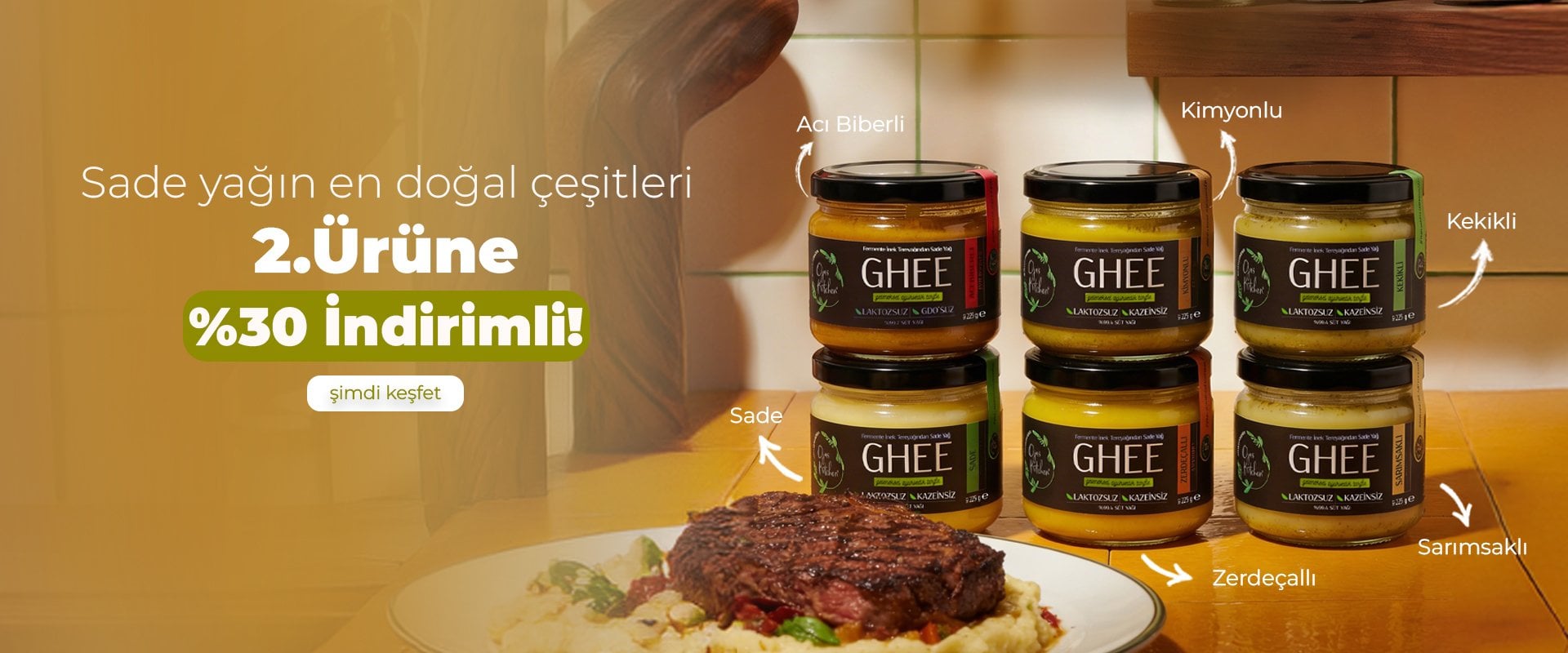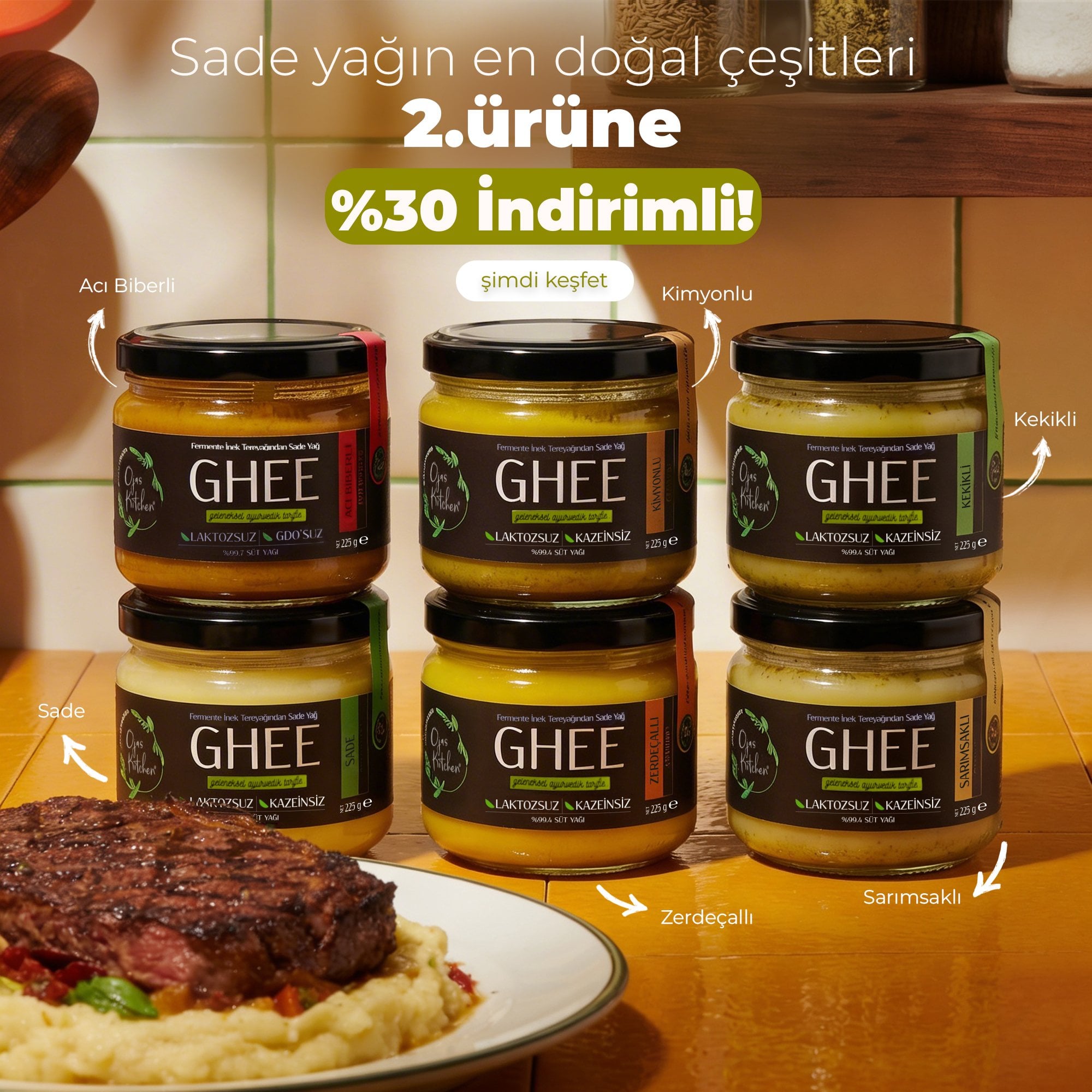 2 li Sade Ghee & Kekikli Ghee Sade Yağ 225 gr Laktozsuz Kazeinsiz Gdo Suz Saf Yağ